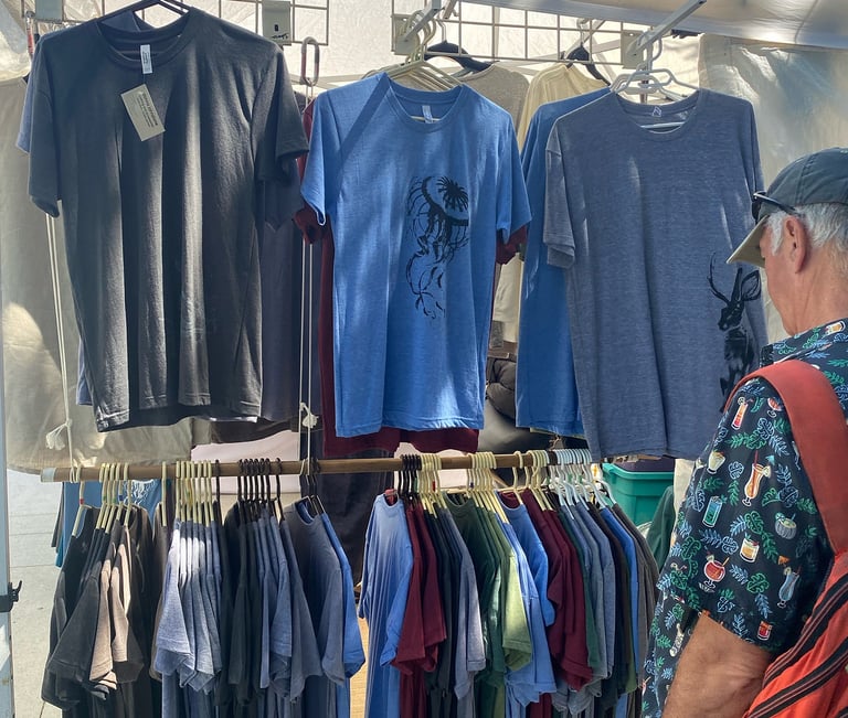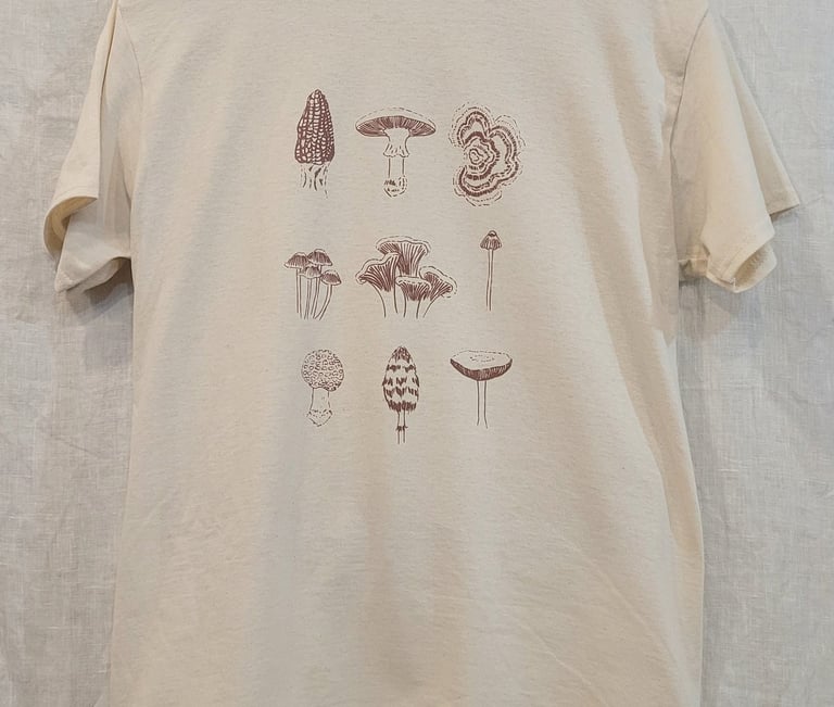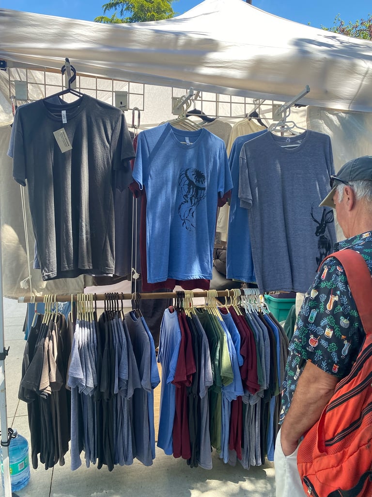Garments and accessories, new and upcycled, hand-drawn and printed here on Salt Spring.