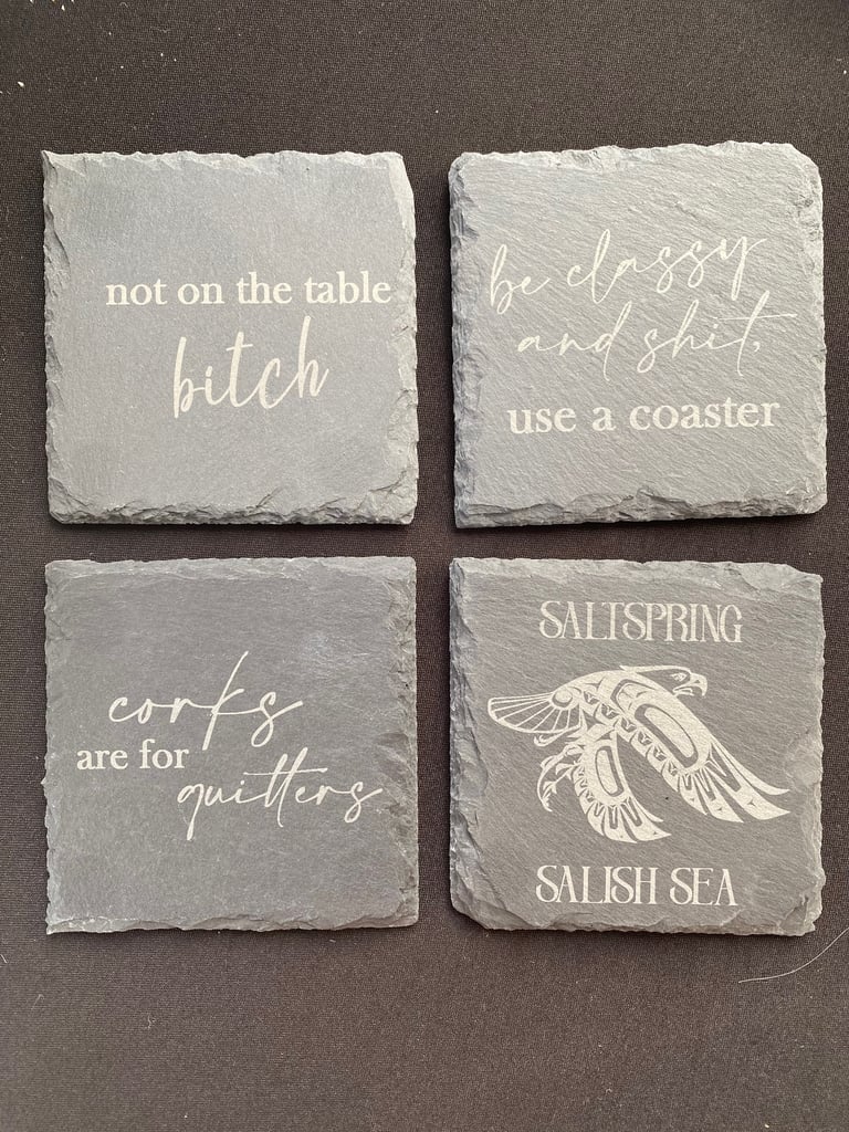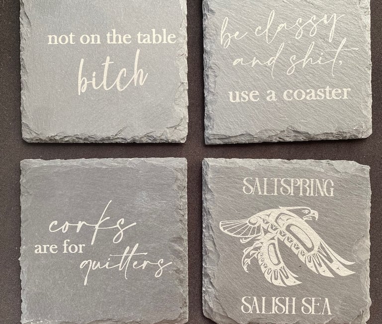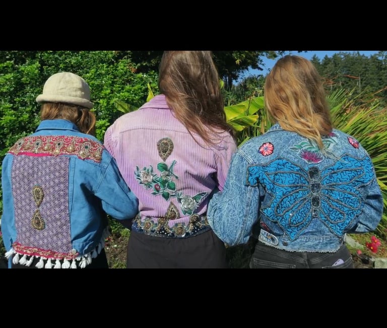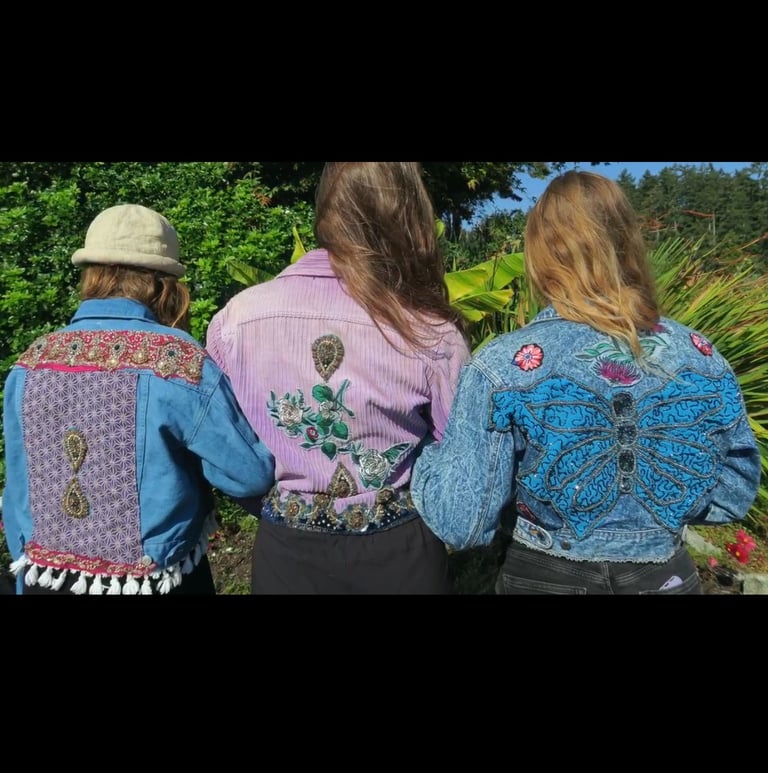 Handmade designs using bleach & indigo, inspired by the elements & nature on salt spring. All materials are up-cycled.
