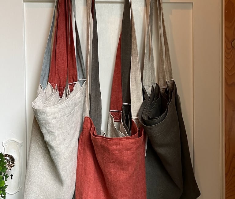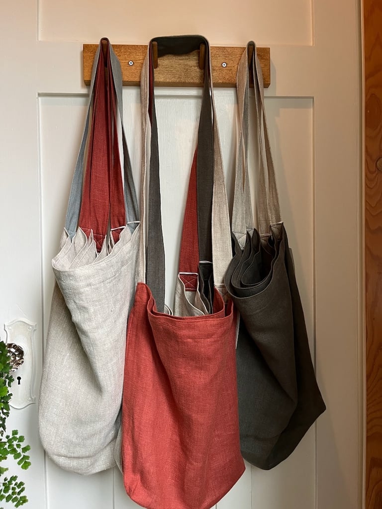 Linen bags, towels, aprons and more. Simple and functional. Natural fibres. Designed and sewn by Anne on Salt Spring Island.