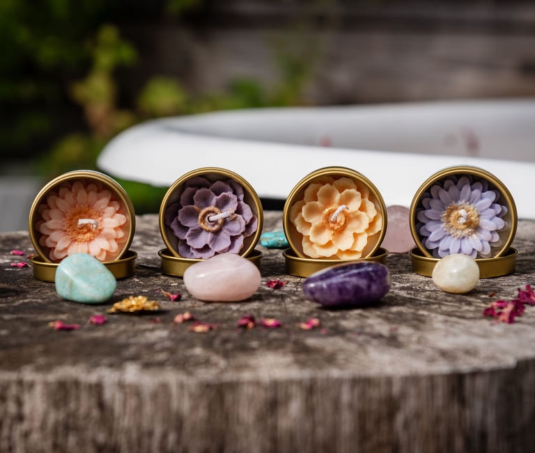 Botanical candles, crystal bath bombs, ritual bath kits, and hand-crafted aromatherapy products made on Salt Spring Island.