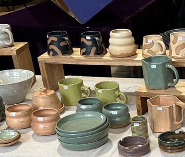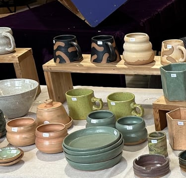 Hand made hats and scarves; wooden furnishings; gluten-free and vegan food