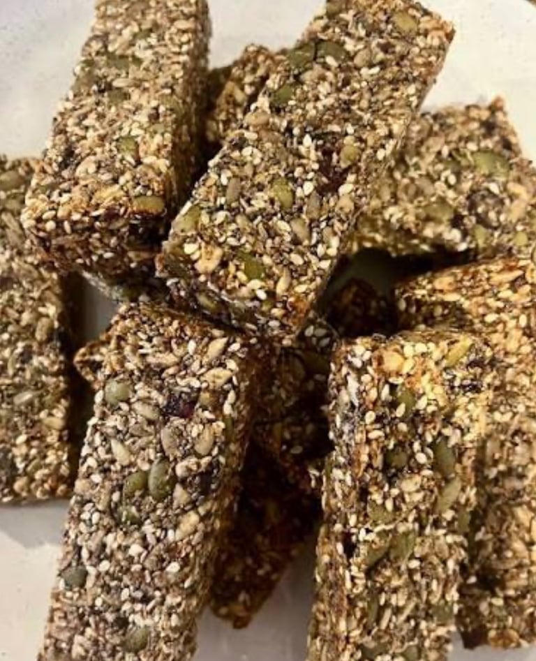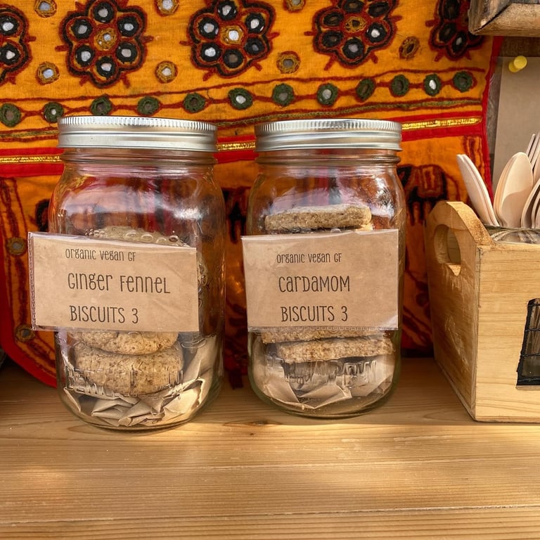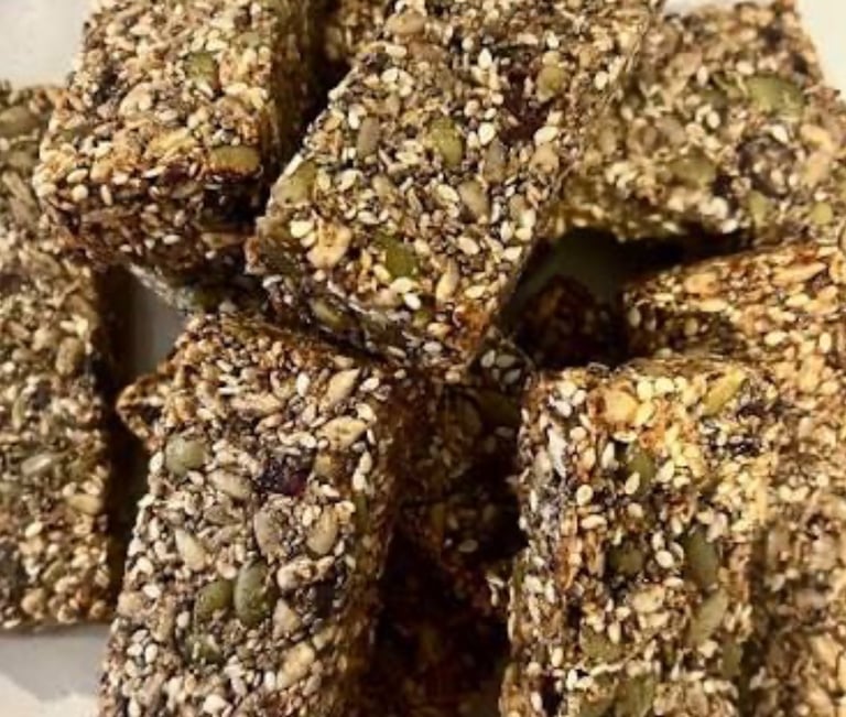 Dehydrated Kale chips, Seed crackers, beeswax candles.
