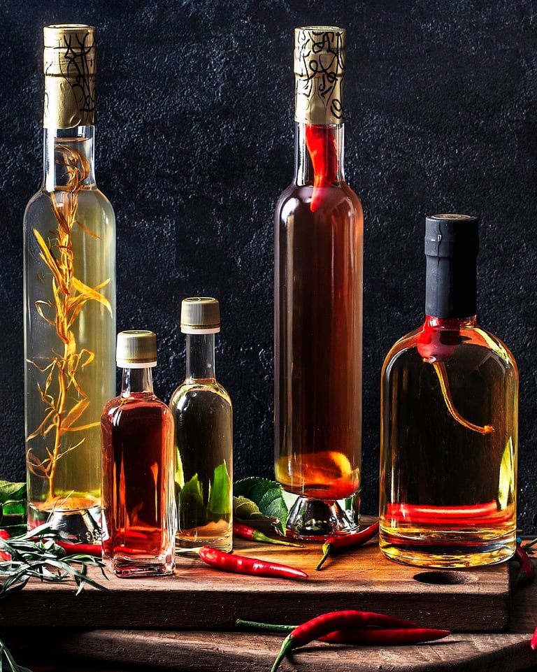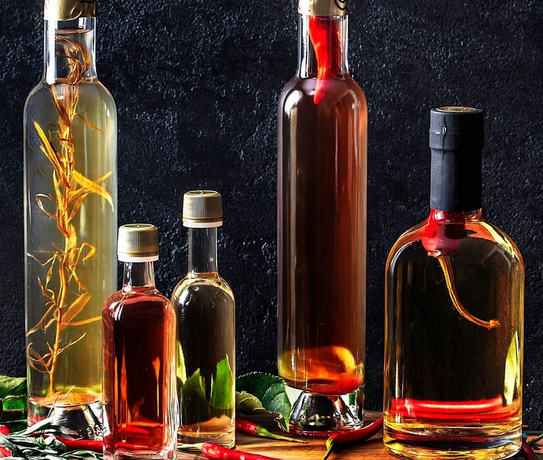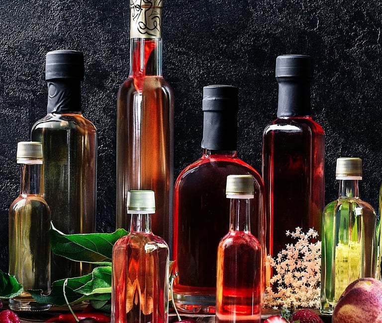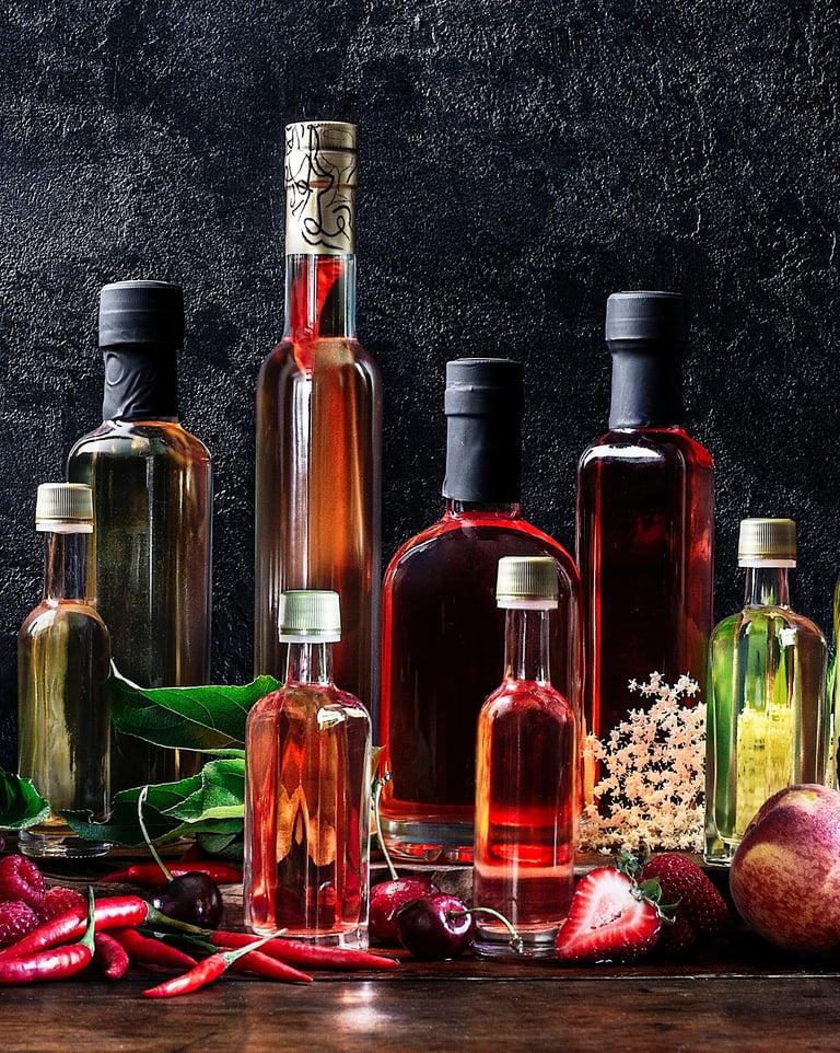 Fruit wine vinegars made from scratch using local ingredients and traditional double fermentation methods.