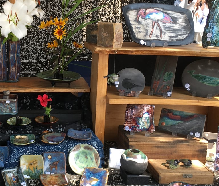 Sculpture pieces; hand built stoneware and raku pieces.